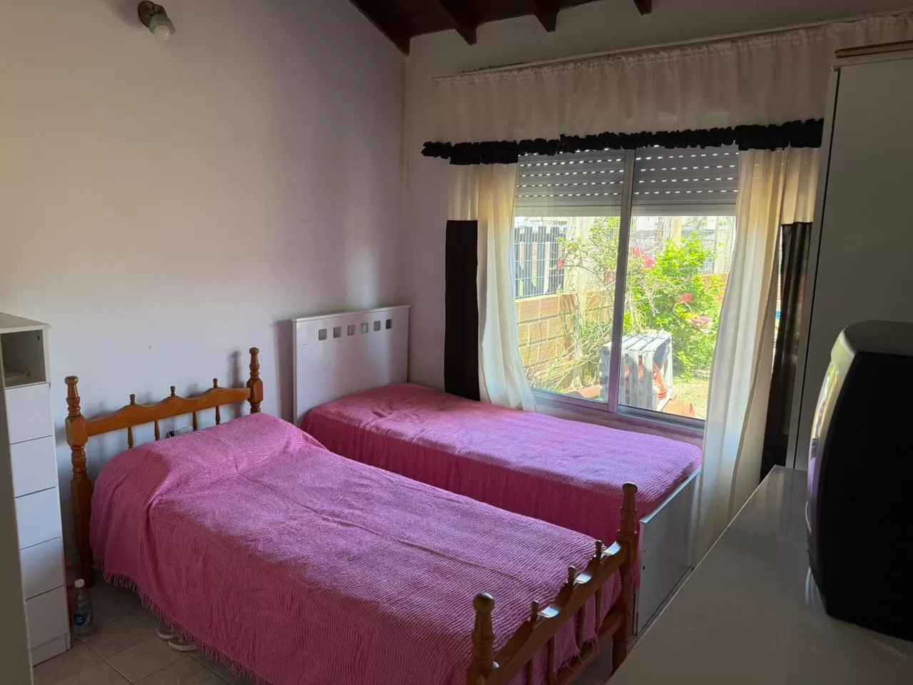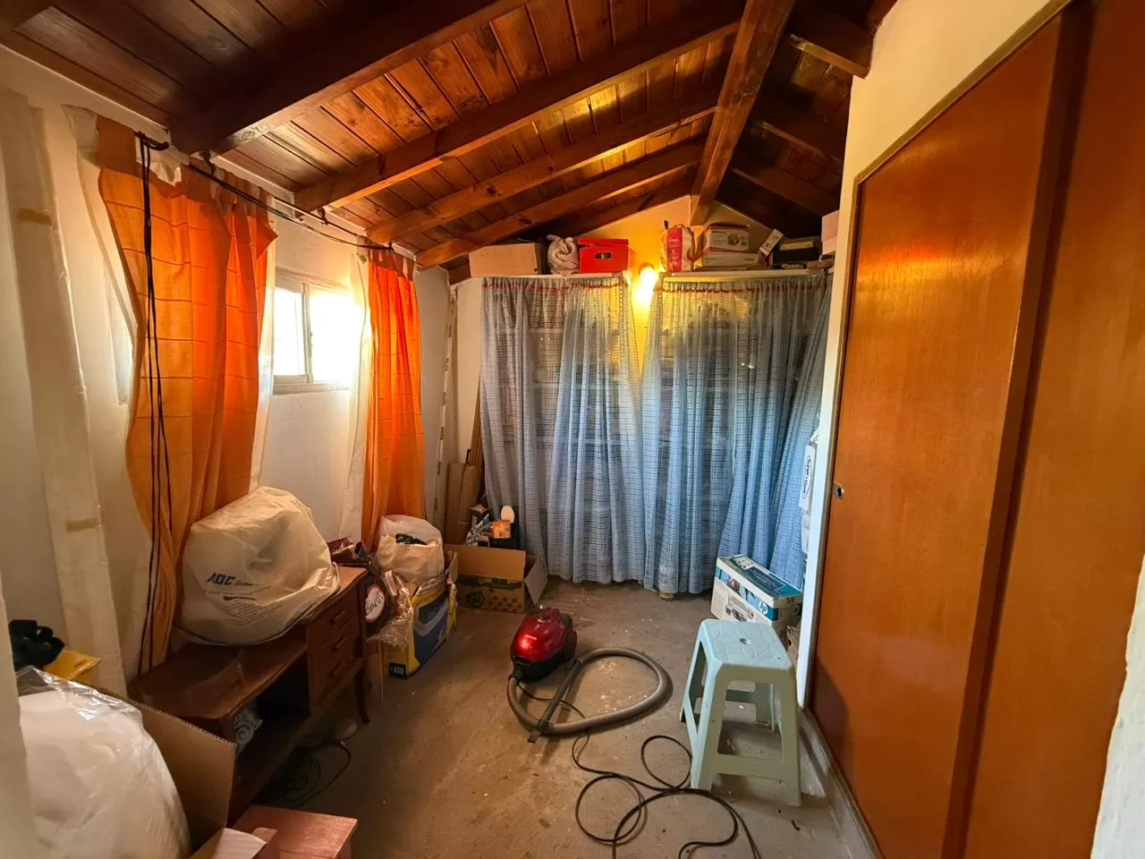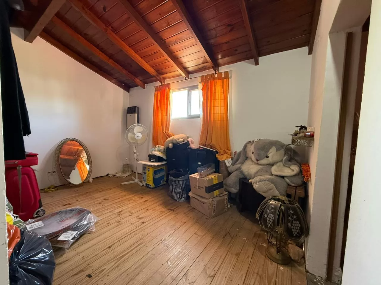 En planta baja dispone de dos habitaciones con placares empotrados y un baño completo. En la planta alta se encuentra otra habitación con vestidor, ideal para mayor privacidad. El acceso a esta segunda planta es mediante una escalera de madera.