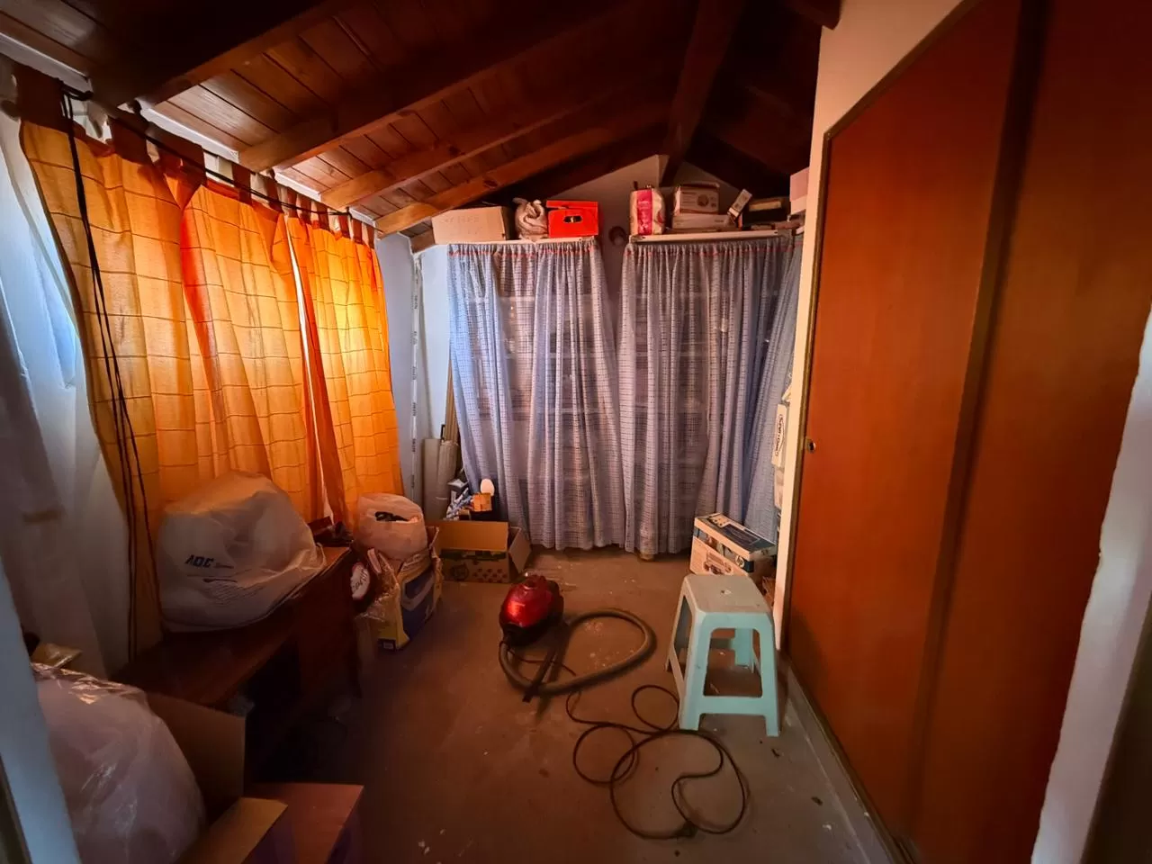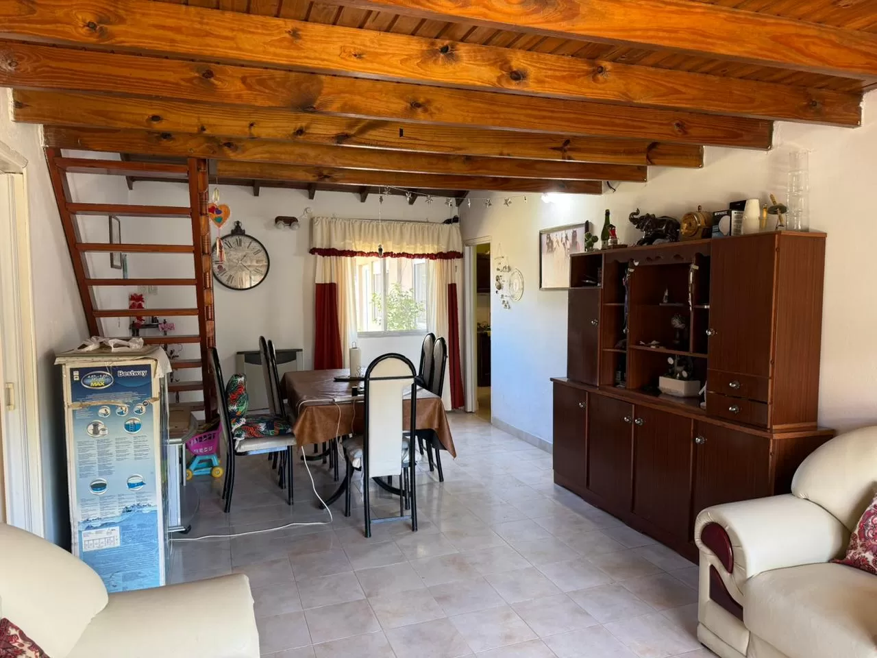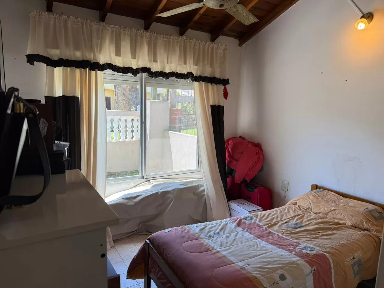 En planta baja dispone de dos habitaciones con placares empotrados y un baño completo. En la planta alta se encuentra otra habitación con vestidor, ideal para mayor privacidad. El acceso a esta segunda planta es mediante una escalera de madera.